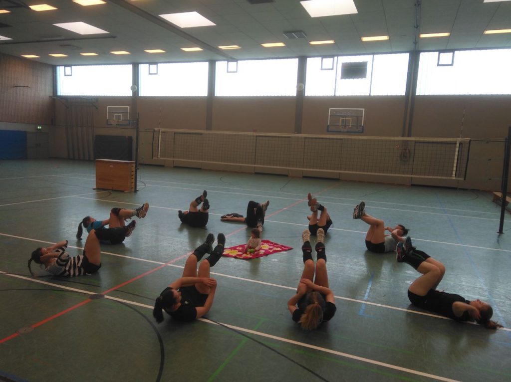 Unter den strengen Augen von „Jungtrainerin“ Lilith wurden vor dem letzten Spieltag die Kraftübungen durchgeführt.