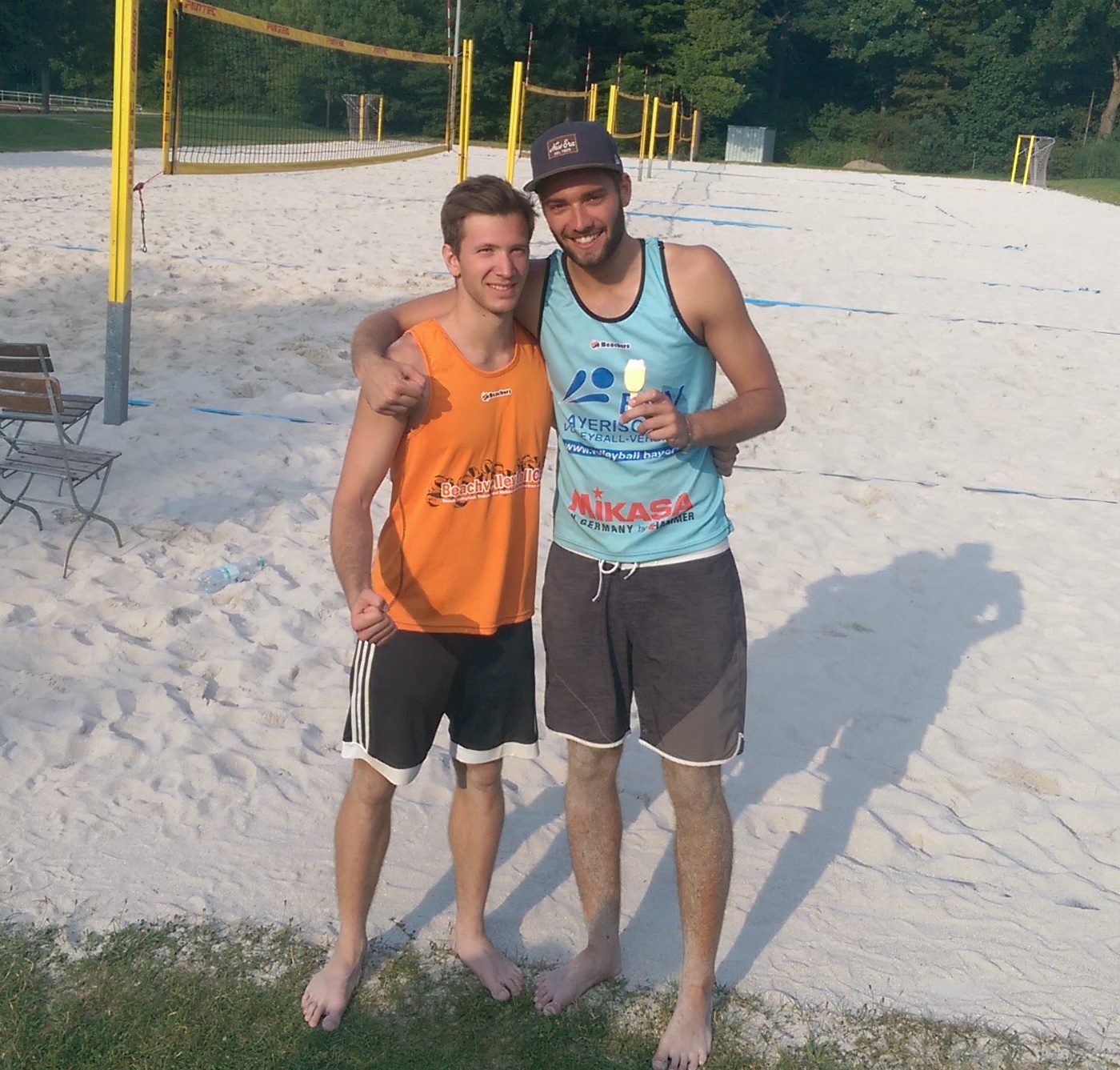 Der Trainingsbeginn in diesem Jahr war Mitte März. Mit Wollmütze und Neoprensocken wurde mindestens zweimal die Woche auf dem Beachplatz der TSG Maisach beachvolleyballspezifisch trainiert. Beweglichkeit, Sprungkraft und vor allem Schlagtechnik und Beachvolleyballtaktik – alles musste vom Hallenvolleyball auf Beachvolleyball umgestellt werden. Dieser Aufwand zeigte nun endlich Ende Juli den Erfolg. Patrick Schmid und Tobias Losher gewannen in Dachau die oberbayerischen Beachvolleyballmeisterschaften. Ohne Satzverlust und in überragender Marnier setzten sie sich gegen die besten Oberbayerns durch. Eine Woche später folgte dann in ähnlicher Überlegenheit im gut besetzten Bayern Cup am Rathausplatz in Augsburg der Sieg, der nicht nur ein Preisgeld sondern auch Punkte für die Bayerische Rangliste brachte.